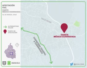 «En la caseta de cobro sobre Autopista México-Cuernavaca Km 23.5 Colonia Tlaxopan @TlalpanAl hay concentración de personas. #C5”, escribió.