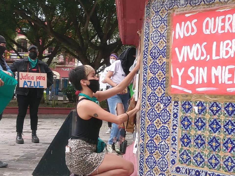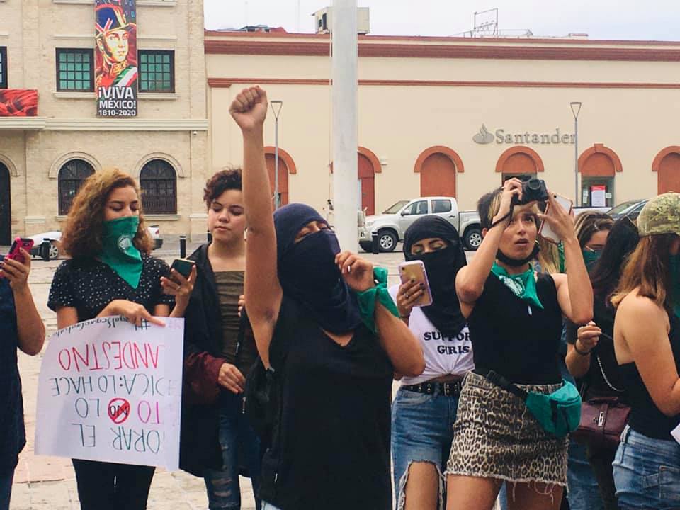 Un grupo 20 mujeres se manifestaron pacíficamente en la Plaza Miguel Hidalgo de Matamoros a favor del aborto.