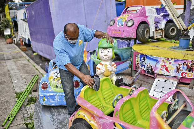 «Toda mi vida he estado aquí, yo nací en un puesto de canicas», cuenta a la AFP el hombre de 61 años en un terreno baldío donde su familia guarda unos siete juegos desde que la emergencia obligó a cerrar las ferias populares.
