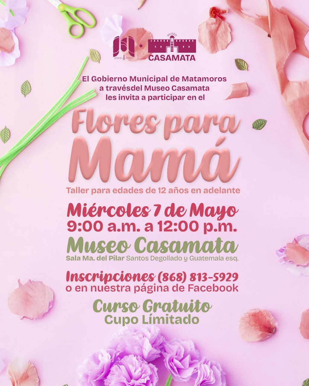 El gobierno municipal, a través del Museo Casamata se unen a la celebración del Día de las Madres reconociendo su invaluable labor diaria, y por ello invita cordialmente al taller “Flores para Mamá”.