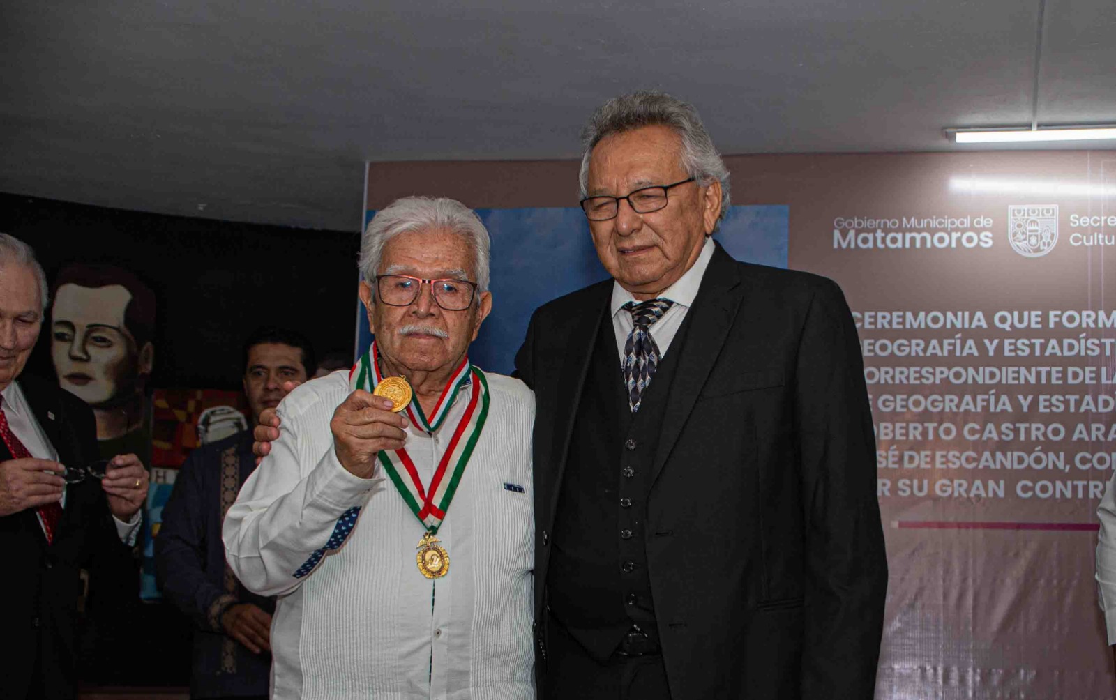 El alcalde Mario Alberto López Hernández asistió a la ceremonia que formaliza a la Sociedad Tamaulipeca de Historia, Geografía y Estadística de Matamoros, como socia correspondiente a la Benemérita Sociedad Mexicana de Geografía y Estadística que preside el Lic. Hugo Roberto Castro Aranda, quien recibió la presea “José de Escandón” por su gran contribución a la cultura nacional.