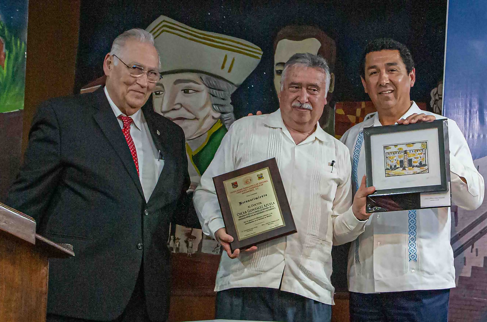 En la ceremonia que se realizó en el Museo Casamata estuvieron presentes: Mirian Yolanda Funes Suárez, directora de Comunicación y Nuevos Proyectos de la citada Sociedad, así como también el Dr. Oscar González Azueta, presidente de la Academia de Historia de la Benemérita Sociedad Mexicana de Geografía y Estadística.