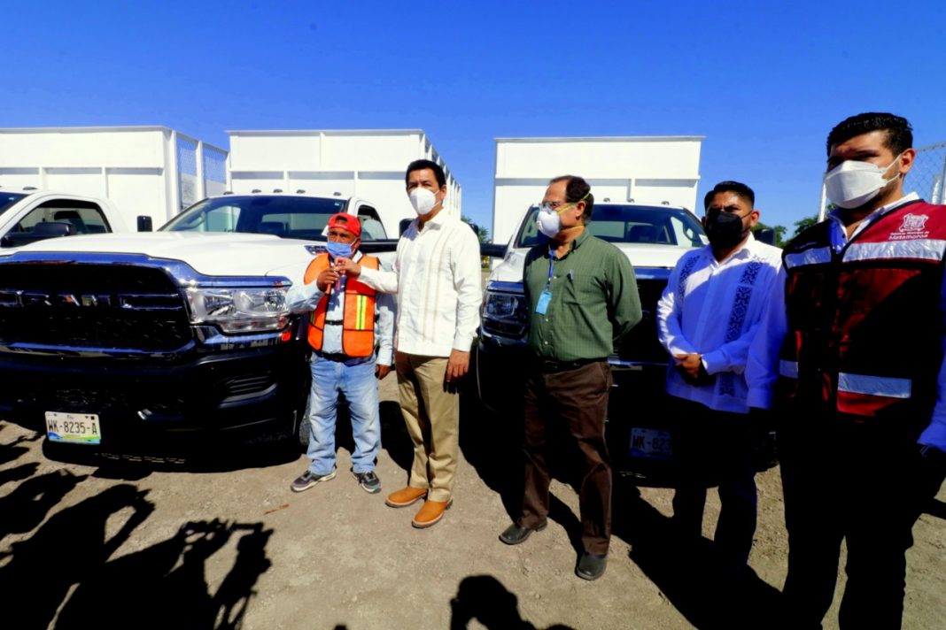 Para seguir fortaleciendo el equipo vehicular de la Secretaría de Servicios Públicos Municipales y de Protección Civil, este miércoles el alcalde Mario Alberto López Hernández entregó las llaves de las unidades que permitirán mejorar la atención que se presta al pueblo de Matamoros en áreas tan importantes como lo es limpieza pública y llamados de auxilio en casos de emergencias
