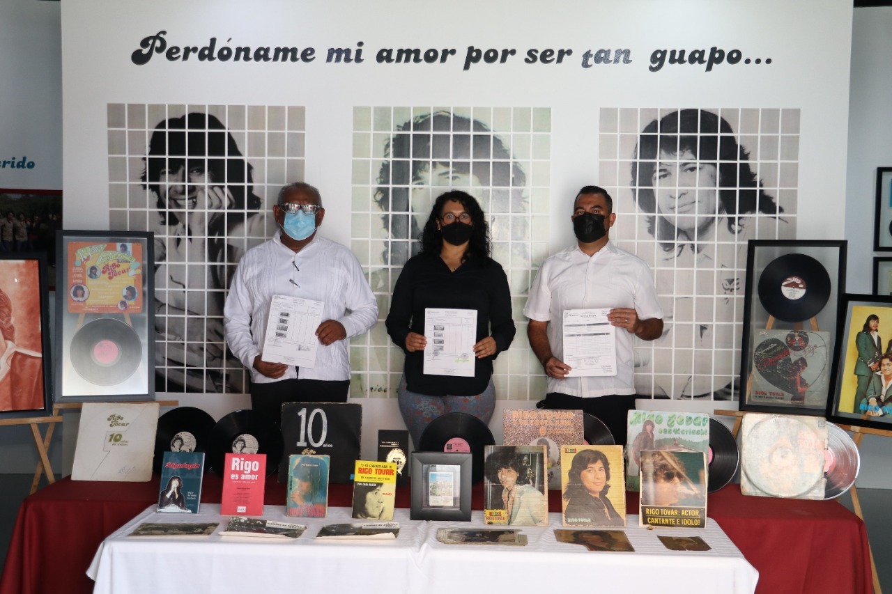 Entre los artículos donados destacan: siete discos de vinilo, entre ellos el volumen 5 “Te quiero dijiste”; volumen 8 “Oh que gusto de volverte a ver”; “15 éxitos románticos de Rigo Tovar.
