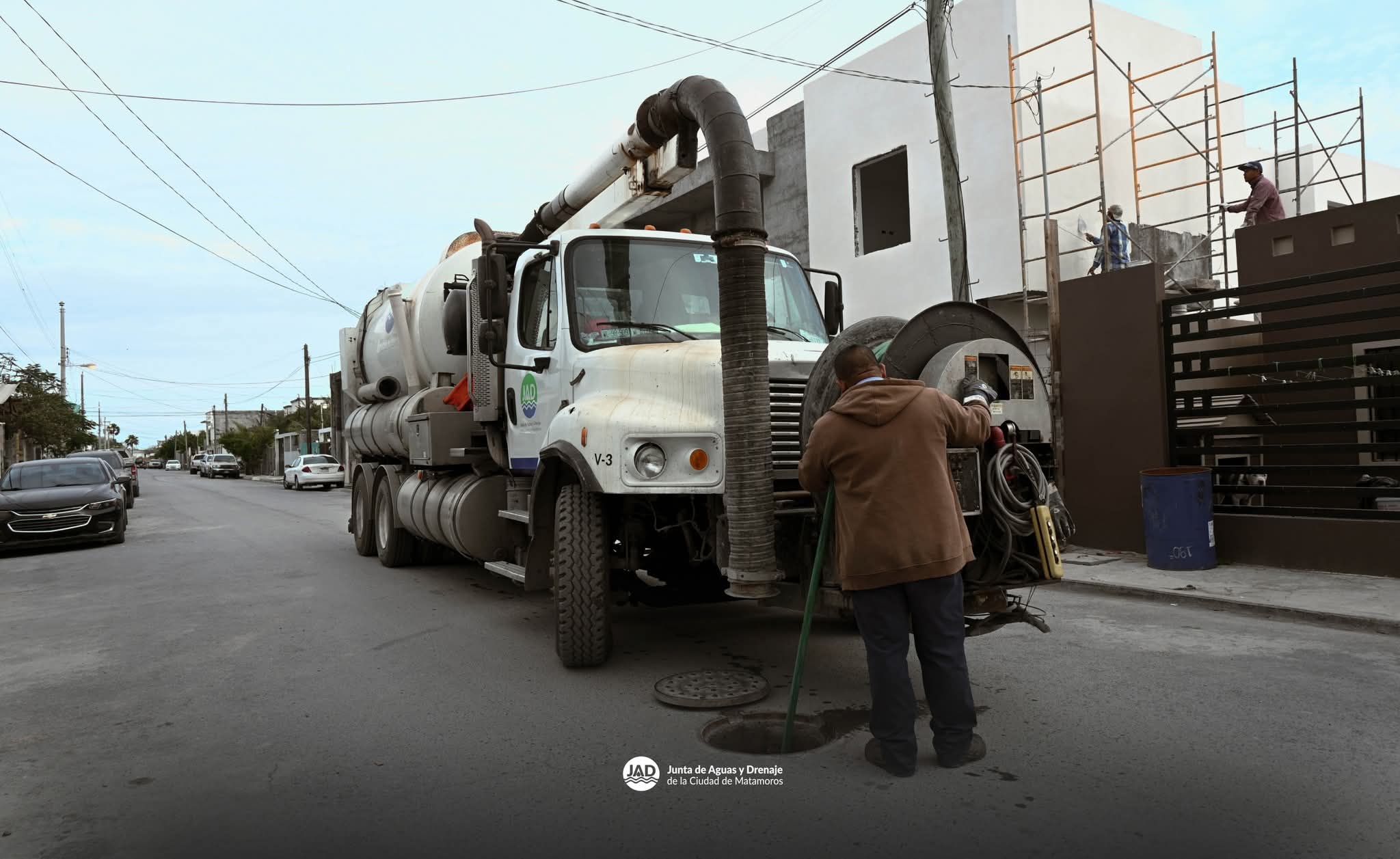 H. Matamoros, Tamaulipas.- Como parte de las acciones permanentes para el cuidado y mantenimiento de la infraestructura sanitaria, el camión vactor de la Junta de Aguas y Drenajes realizó su recorrido en diversas colonias de la ciudad, atendiendo puntos prioritarios para el correcto funcionamiento del drenaje.