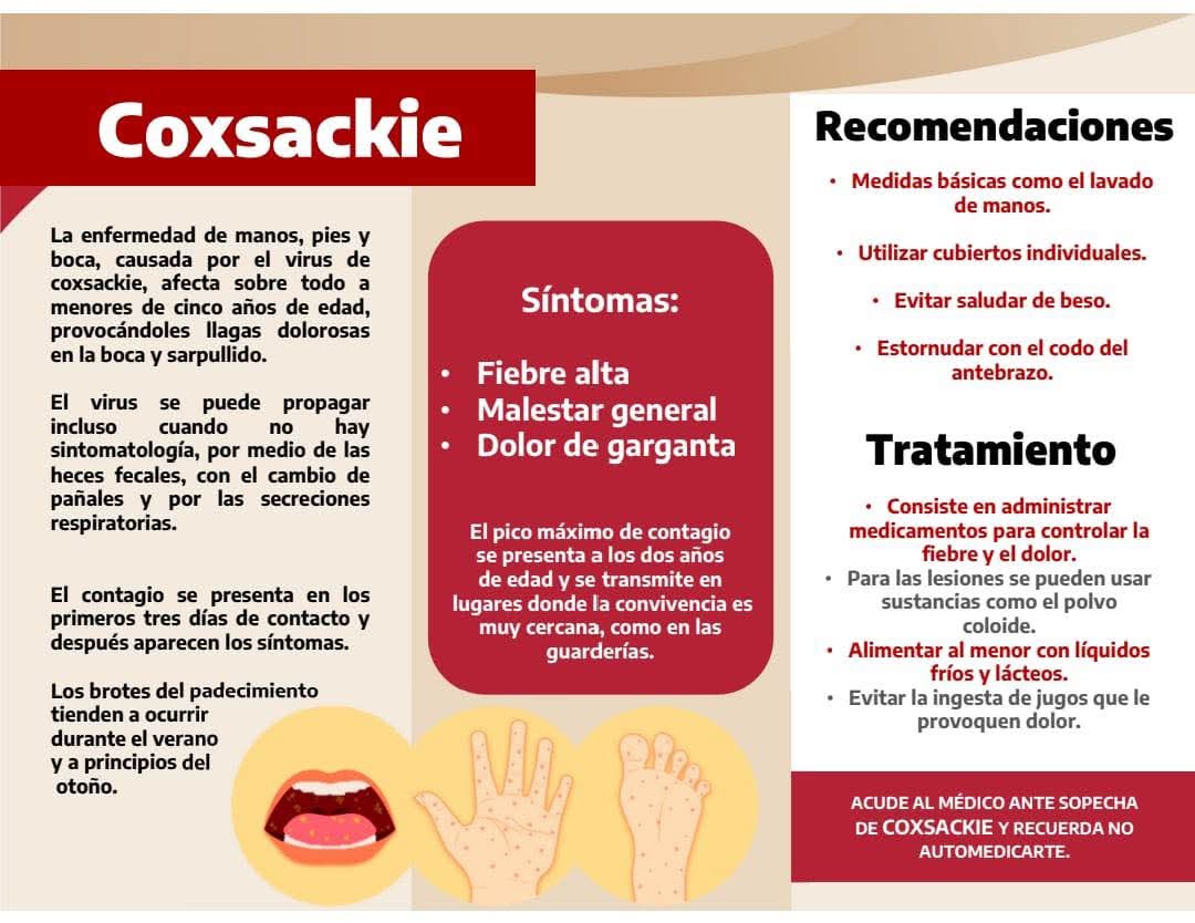 El Gobierno de Matamoros que encabeza Beto Granados brindó información importante sobre el virus Coxsackie, el cual provoca la enfermedad conocida como “manos, pies y boca”. Este padecimiento afecta principalmente a niñas y niños pequeños, causando fiebre, malestar general y la aparición de llagas en la boca, manos y pies.