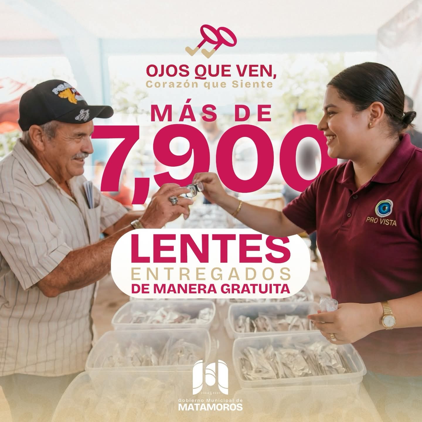 Matamoros, Tam.- El Gobierno de Beto Granados continúa fortaleciendo las acciones en materia de salud visual a través del programa “Ojos Que Ven, Corazón Que Se Siente”, mediante el cual se han entregado más de 7,900 lentes de manera gratuita a la población matamorense, contribuyendo a mejorar la calidad de vida de quienes más lo necesitan.