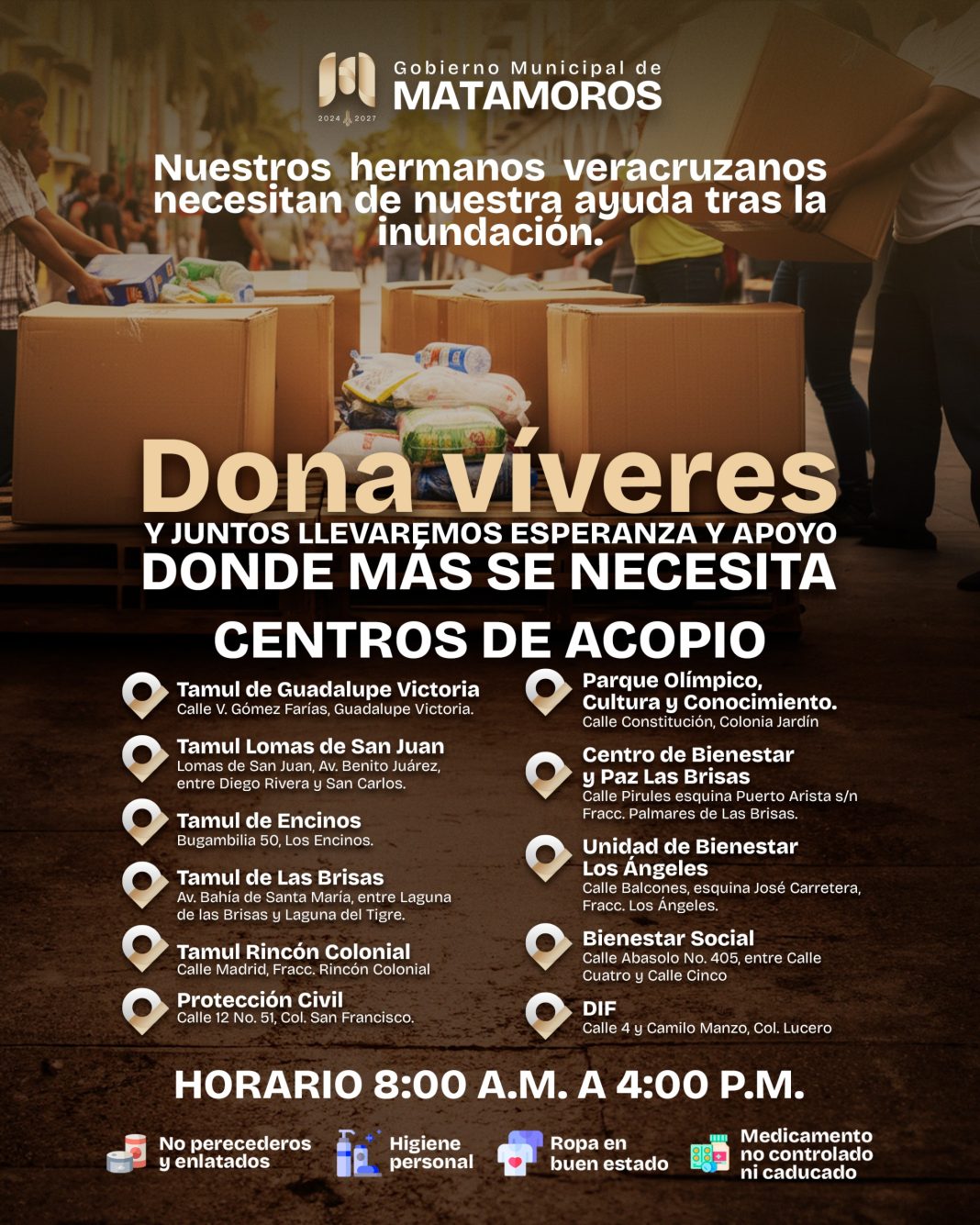 Con esta acción, el Gobierno de Matamoros busca brindar apoyo directo a quienes lo necesitan, promoviendo la colaboración entre comunidades ante situaciones de emergencia.