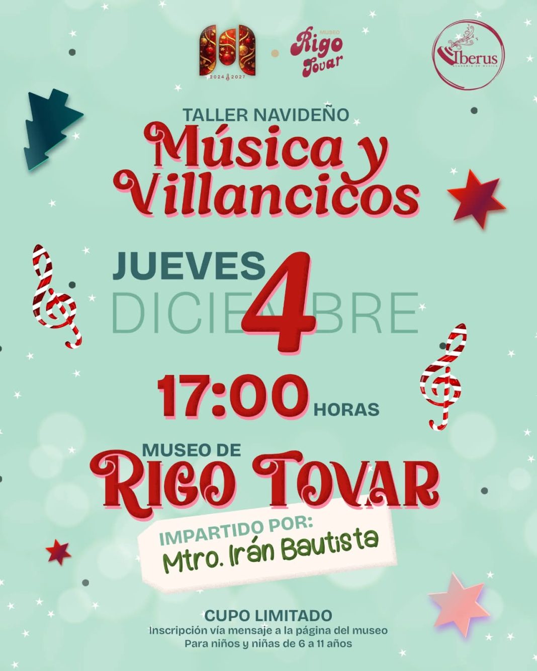 El gobierno municipal que encabeza Beto Granados invita a todas las niñas y niños de Matamoros a participar en un taller navideño de música totalmente gratuito, que se llevará a cabo este jueves 4 de diciembre en el Museo Rigo Tovar, una actividad pensada para que que brille Matamoros a través del talento y la creatividad de su niñez.
