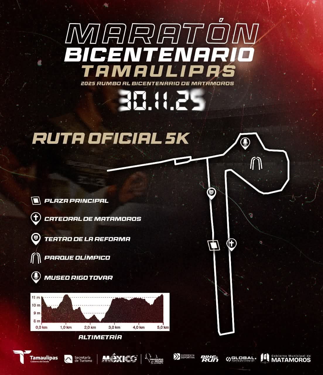 Las distancias de 5K y 10K recorrerán algunos de los puntos más emblemáticos del municipio, permitiendo a los corredores disfrutar de sitios representativos como la Plaza Principal, la Catedral de Matamoros, el Teatro de la Reforma, el Parque Olímpico, el Museo del Ferrocarril y el Monumento a Rigo Tovar. Cada tramo ha sido diseñado para ofrecer seguridad, historia y un ambiente familiar.