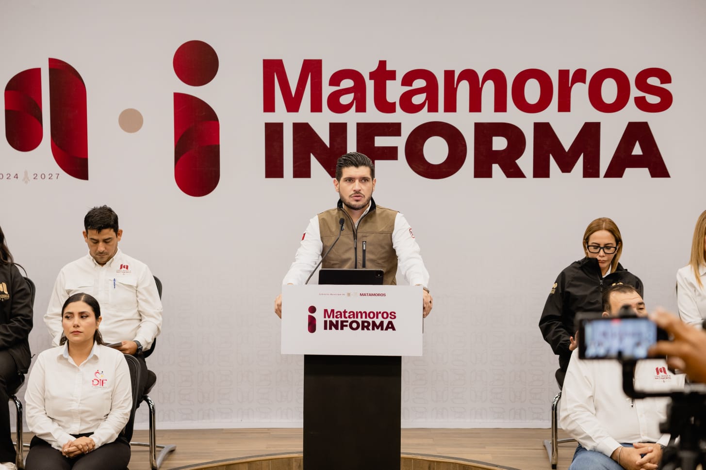 • El Sistema DIF, en voz de su directora, la doctora María Sánchez Cantú, habló del programa Rutas Camino Rosa, que ofrece apoyo para el traslado de mujeres trabajadoras, jóvenes estudiantes y personas adultas mayores. El programa también se extiende a hombres que tramiten sus pases de descuento en el DIF. Asimismo, informó que ya suman poco más de 200 parejas inscritas para participar en los matrimonios colectivos que se realizarán en Matamoros.