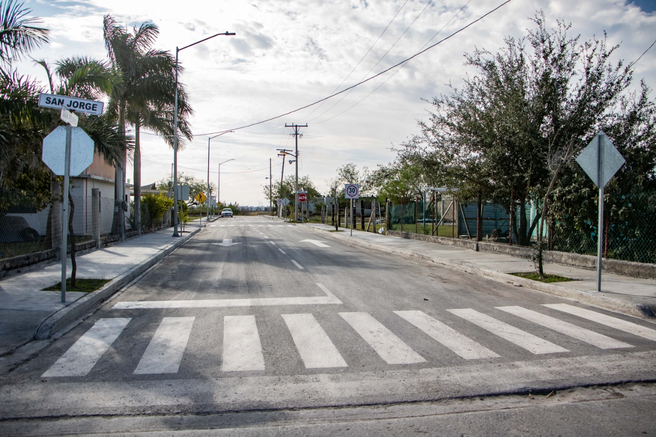 La importante obra de pavimentación que eleva la calidad de vida de cientos de familias se realizó en una superficie de 1,380 metros lineales, incluyendo la calle San Jorge, en el tramo de circuito interior a bordo; la circuito interior, de San José a calle San Juan; la San José, de San Pablo a Circuito Interior y la calle San Pedro en el tramo de Límite Sur a Circuito Interior.