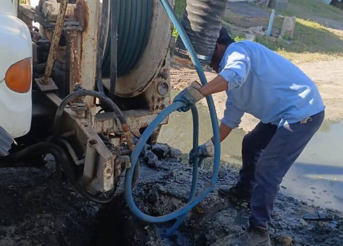 Con el respaldo del presidente municipal, Beto Granados, personal de la Junta de Aguas y Drenaje, acudió a la colonia Rodríguez con un camión vactor para realizar labores de limpieza y desazolve en la zona.