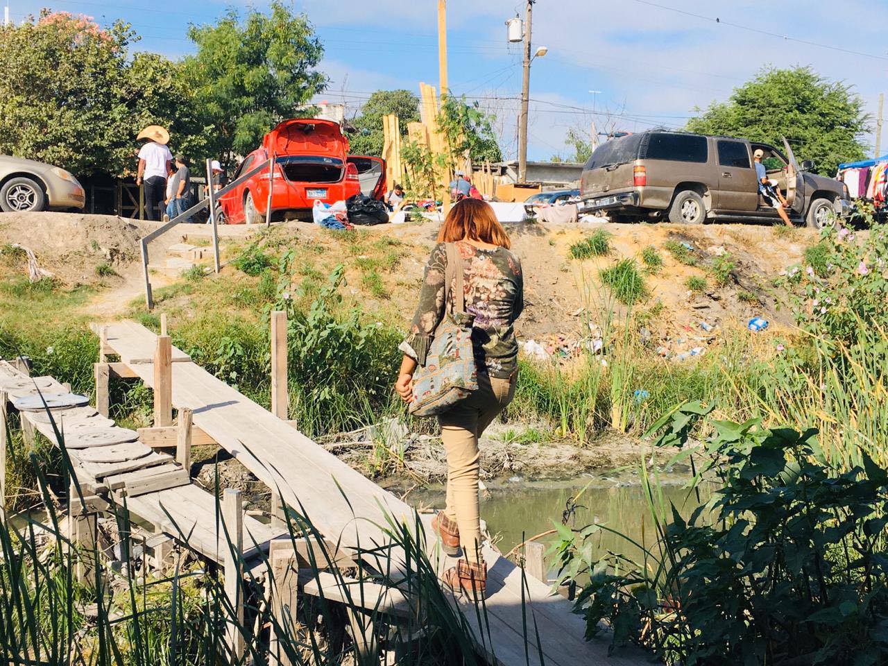 Ante el abandono de las autoridades y la necesidad de cruzar un canal de aguas negras, vecinos de las colonias Benito Juarez, José María Morelos e Infonavit Los Angeles improvisaron un puente de madera con tablas viejas en Matamoros.