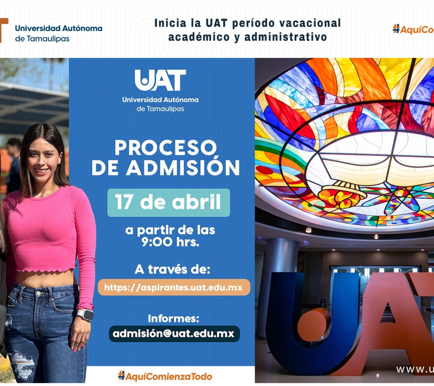 Debido a la actualización que realiza la Universidad Autónoma de Tamaulipas en los programas académicos como parte de la nueva reforma curricular, se ha establecido el 17 de abril como fecha de inicio del proceso de admisión para el periodo de otoño 2023.