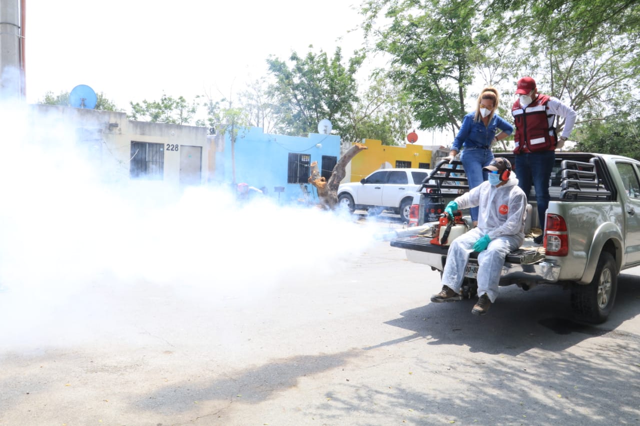 El personal de la Secretaría de Desarrollo y Bienestar Social visitó cada domicilio para solicitar a las familias que abrieran puertas y ventanas de su domicilio, a fin de que entrara vapor de la nebulización termo viral, aplicado por el personal de Espacios Públicos.