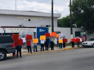 La manifestación de los trabajadores de salud ha sido siempre de forma pacífica frente al edificio de la tercera jurisdicción sanitaria en Matamoros.