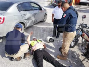 Un motociclista fue atropellado al medio día de este viernes cuando circulaba por la avenida Pedro Cárdenas justo frente al Mundo Nuevo, quedando con graves lesiones y una probable fractura expuesta en una de sus piernas.