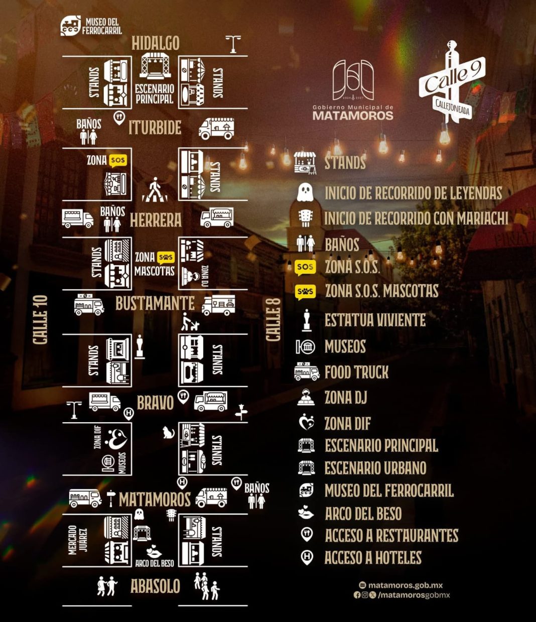 Por instrucciones del alcalde Beto Granados, todo está listo para que los matamorenses disfruten una noche llena de cultura, música y tradición en el corazón de la ciudad.