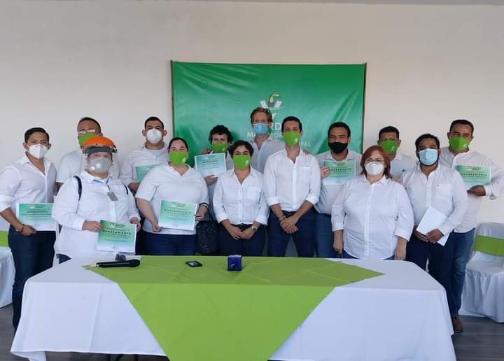 El Presidente de Comite acompañado de importantes lideres a nivel nacional de este Instituto Politico comoTomás Gloria Requena Coordinador Nacional del Campo Verde y Karl Heinz Becker Enlace del Comite Ejecutivo Nacional del PVEM les tomaron la protesta y dejaron instalado oficialmente el Comite Directivo Municipal quedando de la siguiente manera: