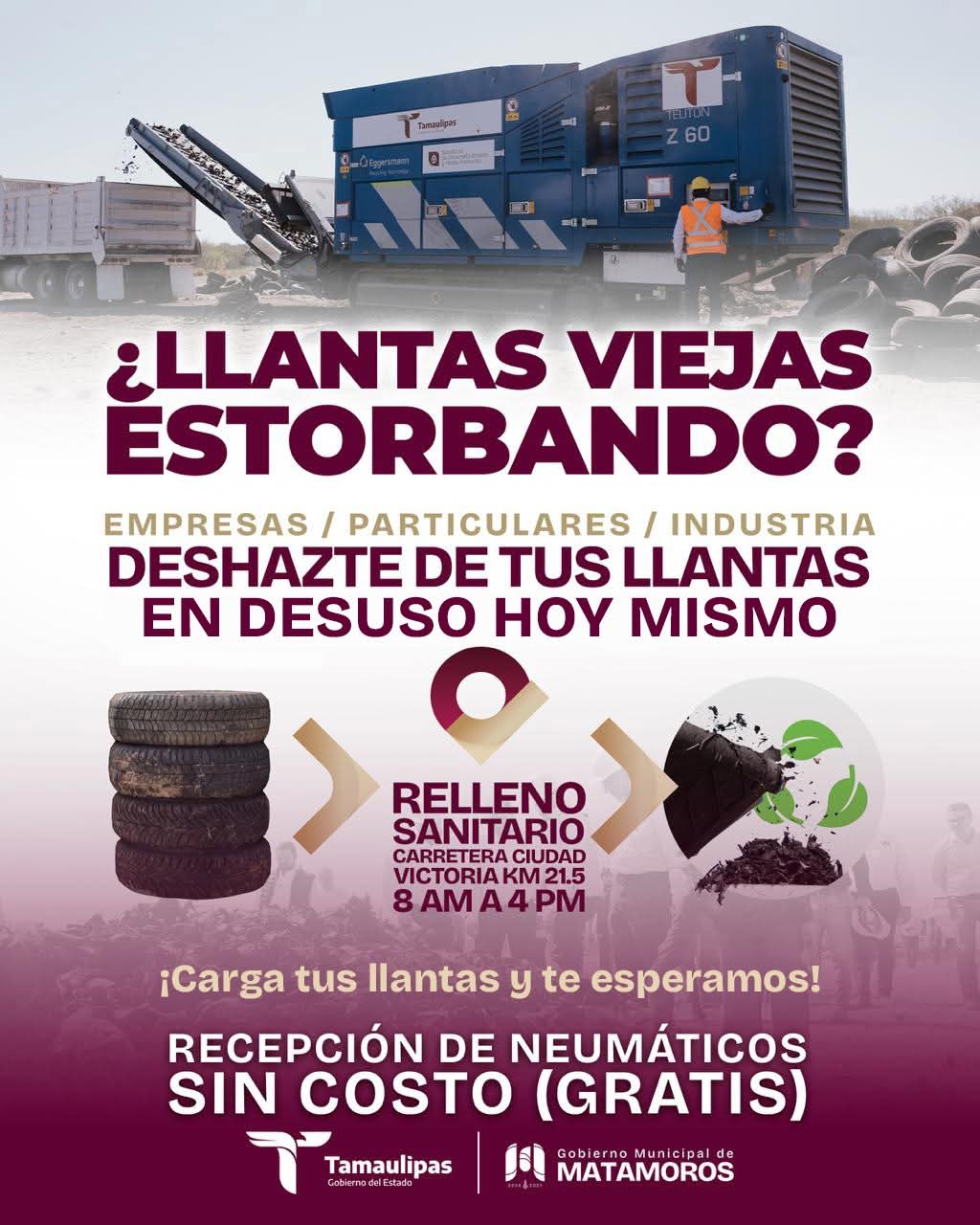 Por ello, se mantiene habilitado un punto de recepción donde empresas, industria y ciudadanía en general pueden llevar sus neumáticos sin costo, asegurando un manejo responsable y contribuyendo a un entorno más limpio y ordenado.