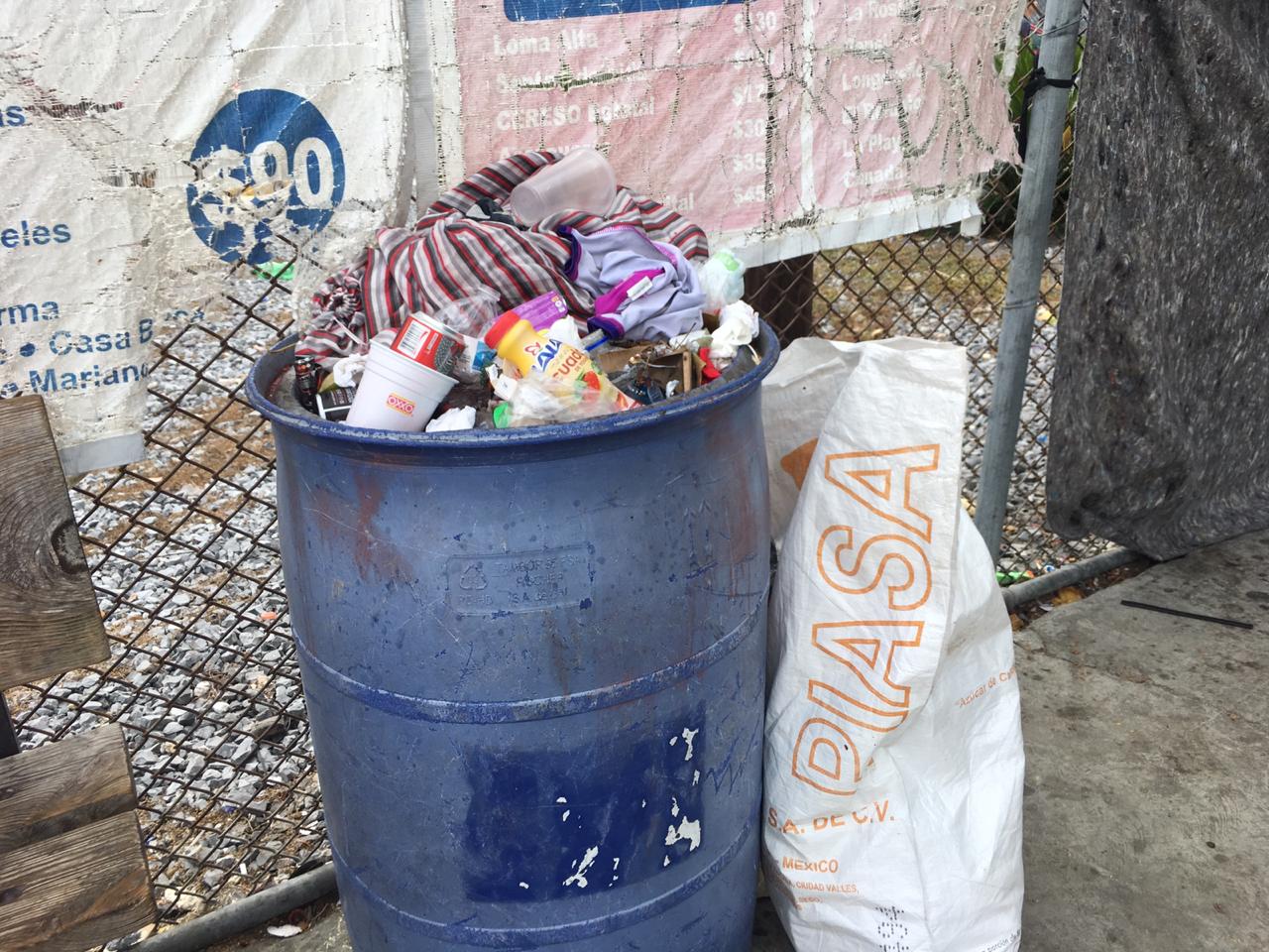 Por el contrario en el campamento de migrantes mexicanos del Puente Viejo Internacional se organizan, se cooperan para realizar a diario actividades de limpieza y recolección de basura, colocándola en los botes destinados para ello.