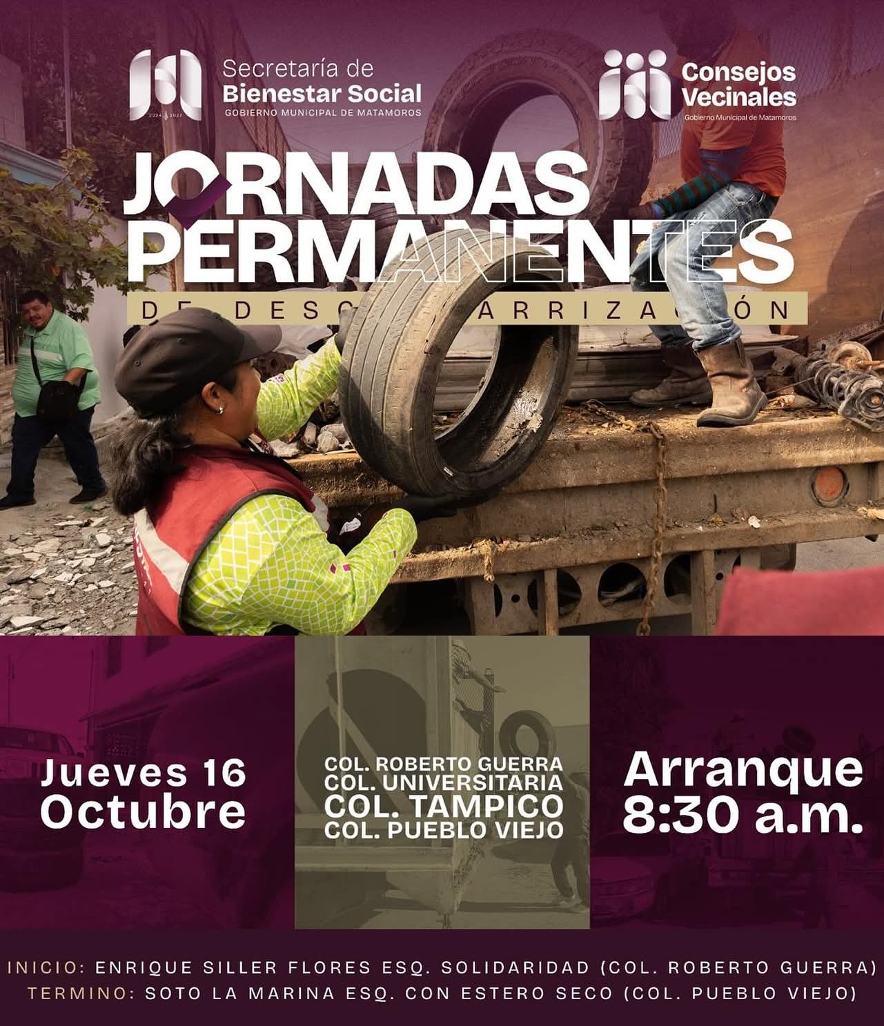 Este jueves 16 de octubre, el Gobierno Municipal que encabeza el alcalde Beto Granados continúa con las jornadas permanentes de descacharrización, trabajando en distintas colonias de la ciudad para mejorar el drenaje pluvial y prevenir inundaciones .