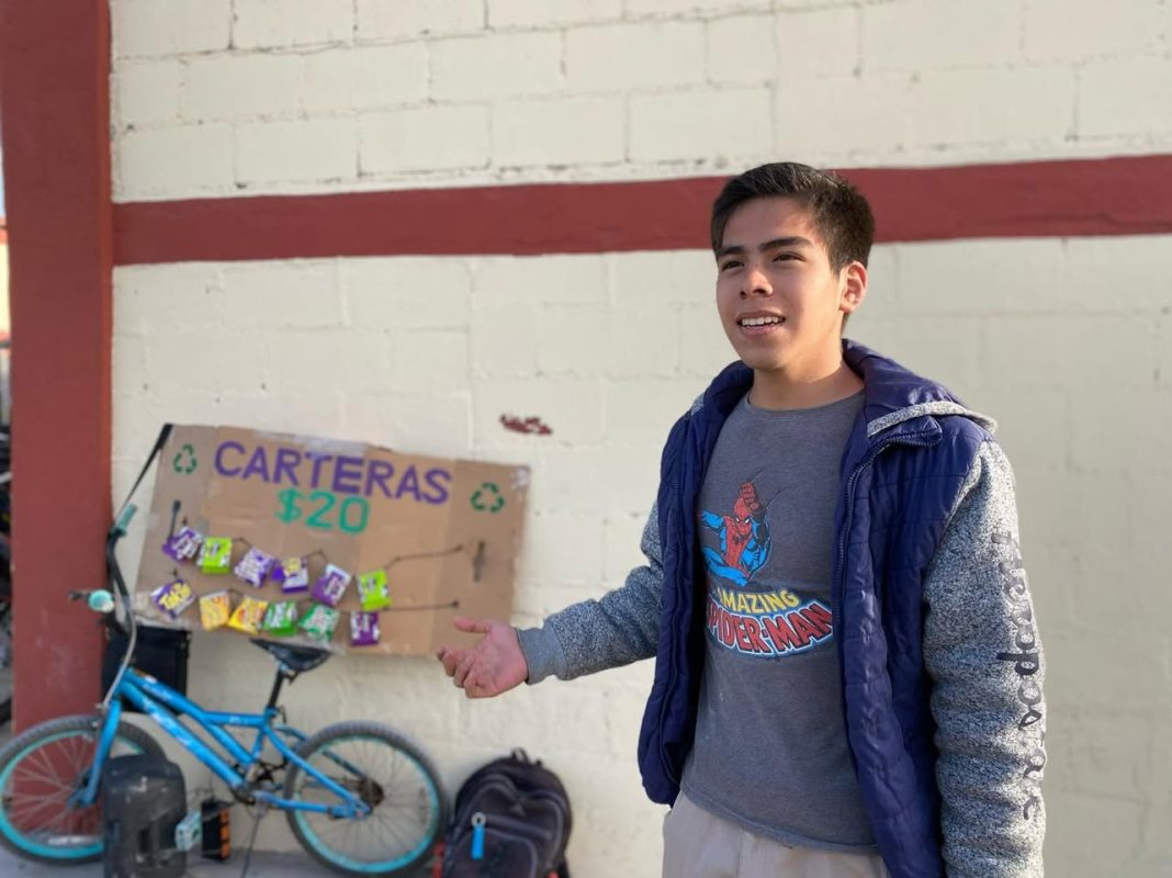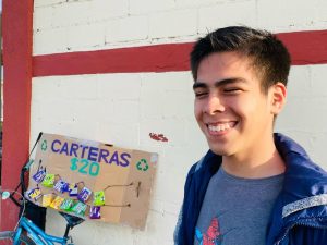 Es ayudante de mecánico pero con venta de carteras ecológicas aspira a estudiar la prepa y más tarde Ingeneria