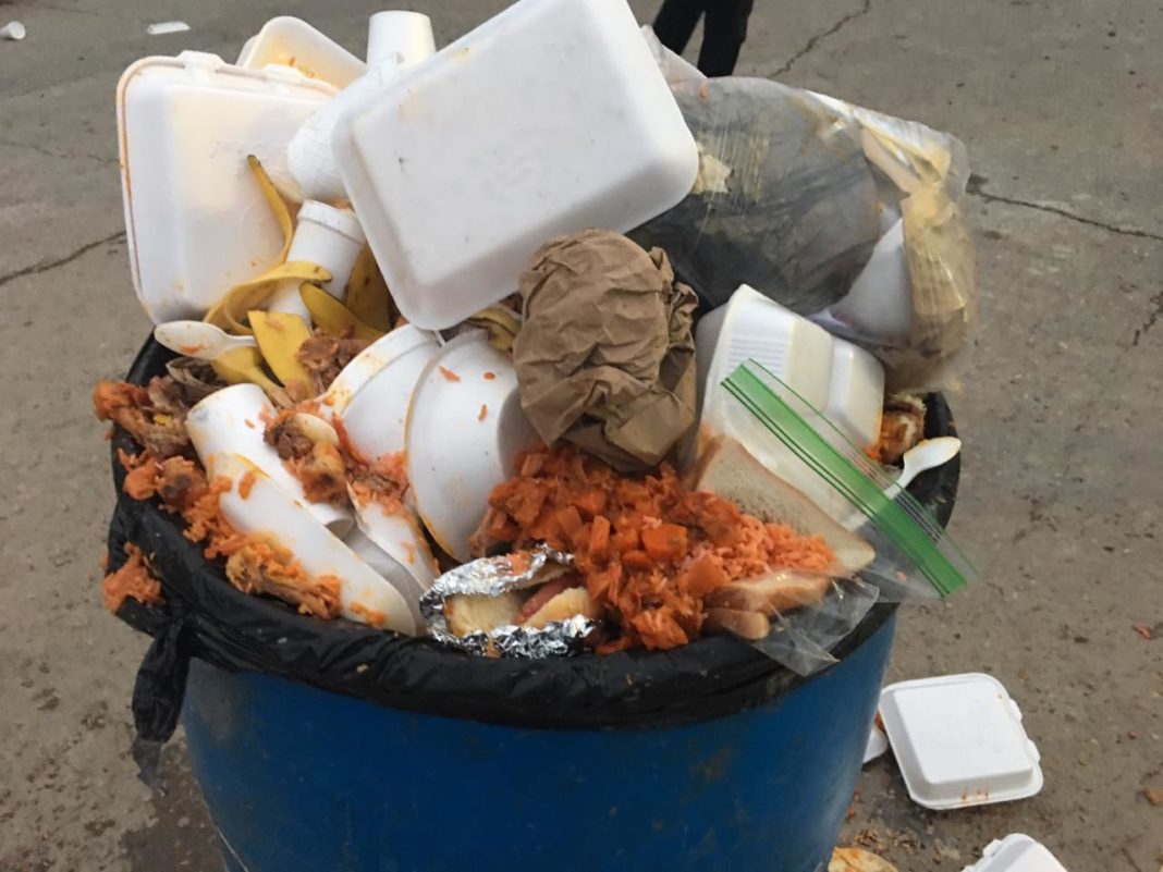 Una comida que minutos antes acababan de servir por un grupo de cristianos fue a parar al bote de la basura.