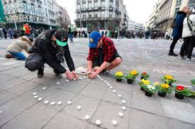 Mientras las zonas cercanas a Maelbeek permanecen cercadas por policías, algunos residentes se acercaron a depositar flores.