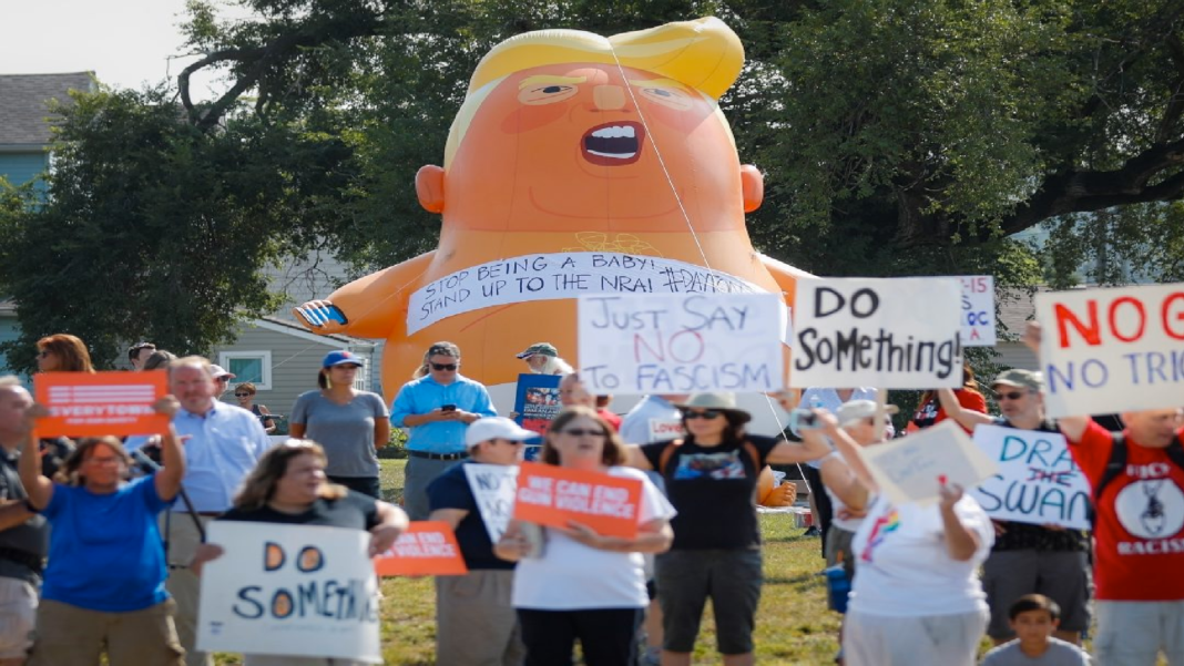 También se hizo presente el “Baby Trump” que ha acompañado otras protestas al interior de EU y otras ciudades en el exterior.