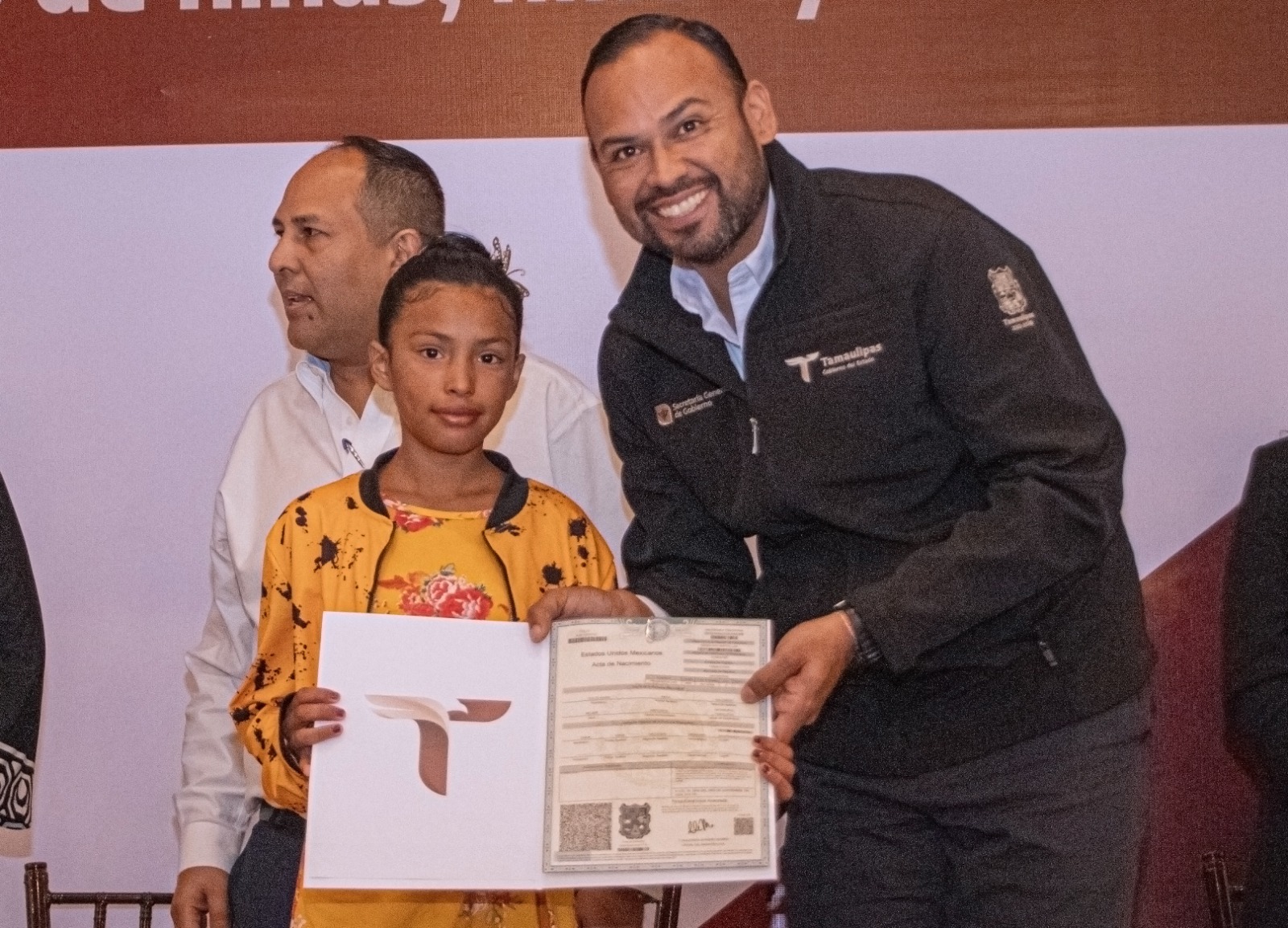 Ernestina Lozano Rodríguez, primera regidora presidente de la Comisión de Bienestar Social, Héctor León Pérez Guajardo, Hugo Cesar Zamorano Ayala, Alejandra Monzón Cazares, titulares de las Oficialías 2da, 3ra y 4ta del Registro Civil en Matamoros, respectivamente, fueron algunas de las autoridades que dieron realce a esta primera entrega de actas de nacimiento en el municipio.