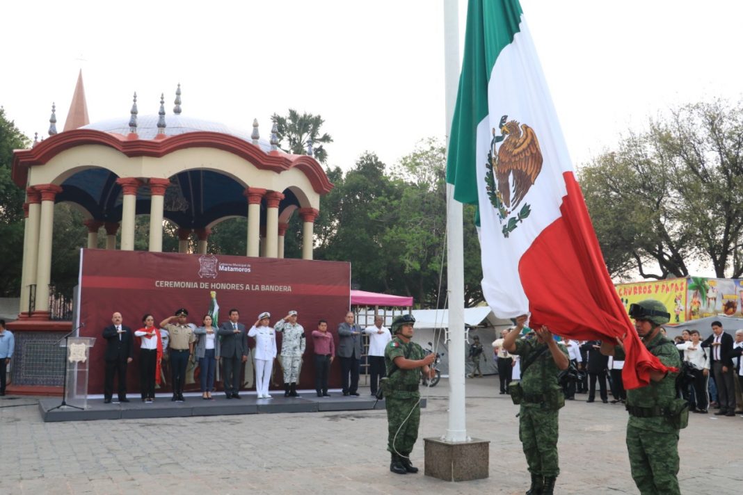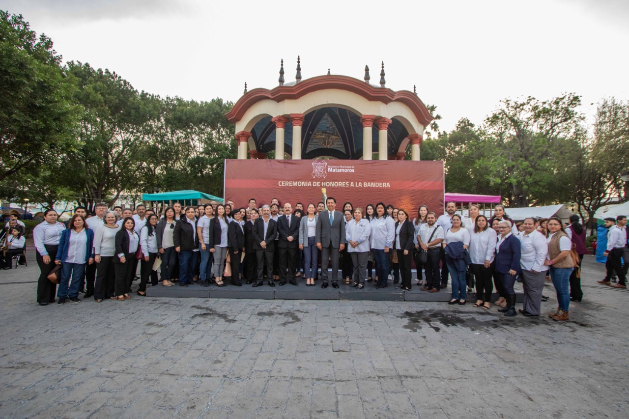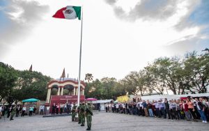 Este lunes a temprana hora el alcalde Mario Alberto López Hernández acompañado por la presidenta del DIF, Marsella Huerta de López así como también por autoridades educativas y militares encabezó la ceremonia de honores celebrada en la plaza principal “Miguel Hidalgo”, cuya organización correspondió al personal de la tesorería municipal.