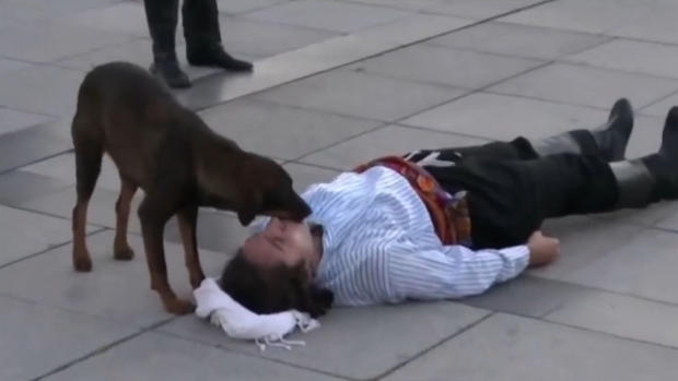 El artista no se dio cuenta entonces de que un can se le acercó para tratar de ayudarle. «Me sentí muy feliz cuando sentí los besos del perro. Me conmovió mucho. Fue como un ángel que quiso ayudarme. Ha sido un momento muy emocional. No me lo esperaba», confesó Uzunsoy.