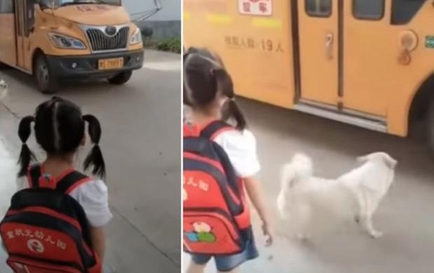 En las últimas horas, un video de Facebook se ubicó entre los más destacados por tener como protagonista a un perro que cuida a una niña que espera el autobús escolar. La escena fue grabada en Xinyang, Henan.