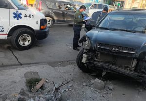 Fuerte choque en el fraccionamiento Las Brisas, donde una mujer resultó lesionada.