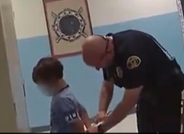 Este lunes apareció un video desgarrador de un incidente de 2018 en el que los oficiales de policía intentaron esposar a un niño de ocho años que lloraba en su escuela primaria y le dijeron que iría a la cárcel.