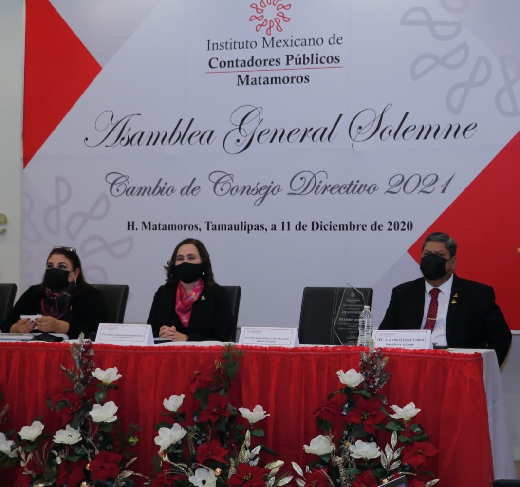 En la Asamblea se contó con la presencia de la Maestra Diamantina Perales Flores, presidenta Nacional del Instituto Mexicano de Contadores Públicos 2019-2022, quien tomó la protesta a Lorena Fernández Alanís, como presidenta del Consejo Directivo en Matamoros para el año 2021.