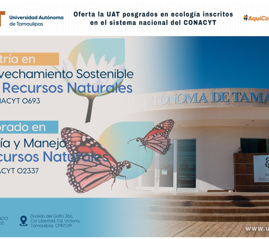 La Universidad Autónoma de Tamaulipas (UAT), a través de los posgrados que imparte el Instituto de Ecología Aplicada (IEA), ofrece la oportunidad de estudiar y desarrollar investigación especializada en la solución de problemáticas del medioambiente y el manejo sustentable de los recursos naturales.