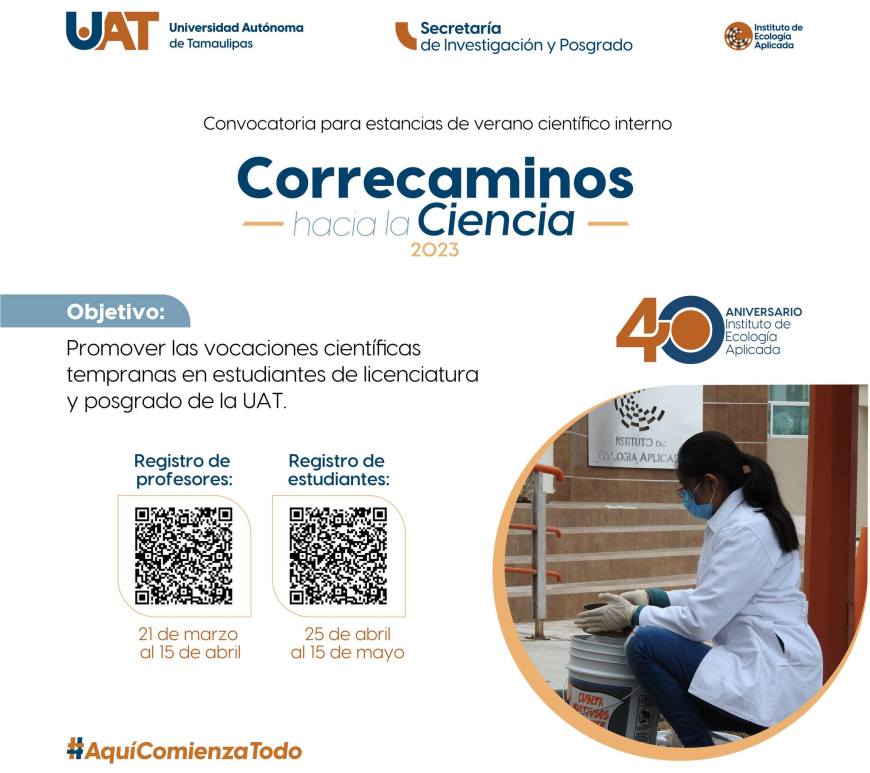 Con el objetivo de incrementar la participación de estudiantes y docentes en la aplicación y transferencia del conocimiento científico, la Universidad Autónoma de Tamaulipas (UAT) promueve la convocatoria “Correcaminos hacia la ciencia”, la cual consiste en estancias cortas de investigación de forma interna.
