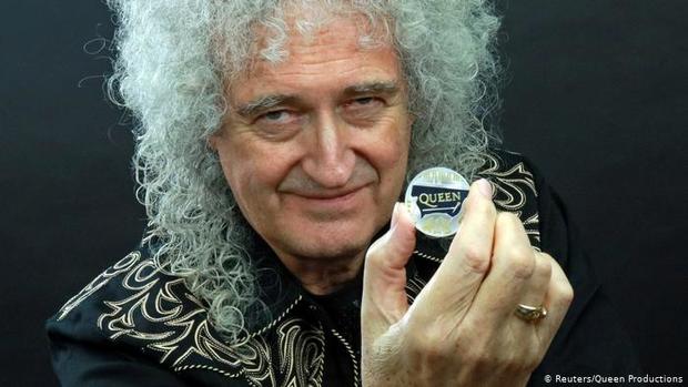 “Por un lado (de la moneda) tenemos a la reina (Isabel); por el otro, tenemos a Queen. Esto nunca había pasado”, agregó el músico, que también es un reconocido astrofísico.