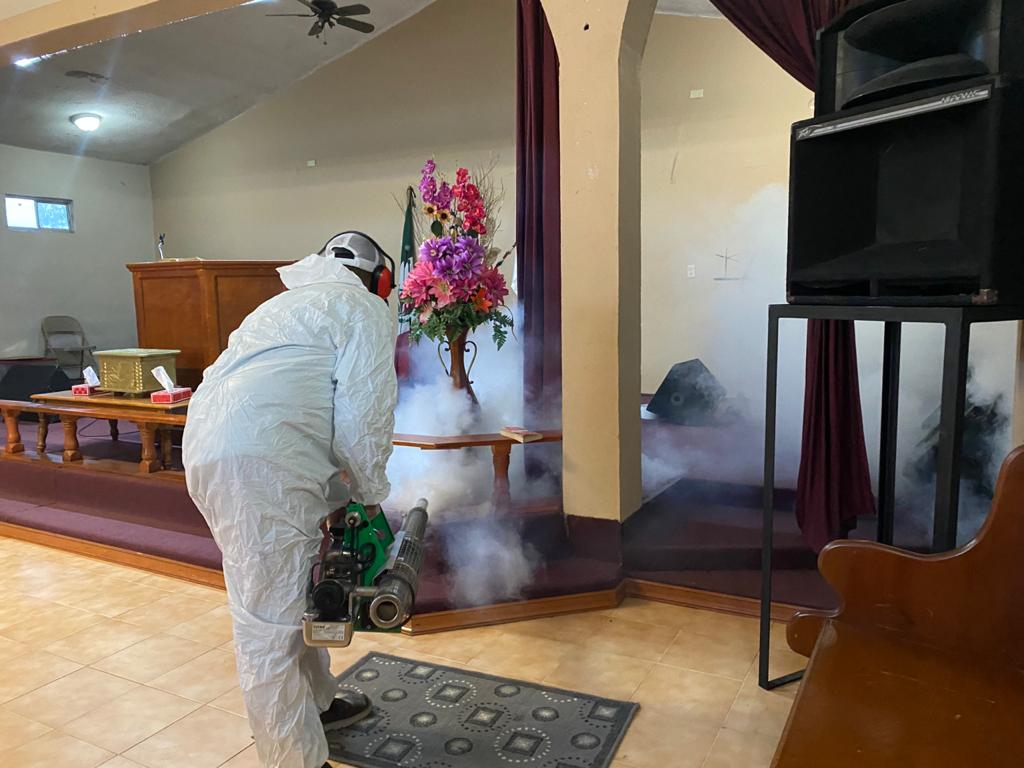 Este miércoles las acciones de sanitización se realizaron en: Iglesia “Aliento de Vida”, Templo Gólgota e Iglesia de Cristo; los tres centros religiosos ubicados en la colonia López Portillo.