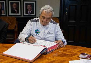 “Muchas gracias por recibirme en Matamoros, me lleno de orgullo estar conviviendo con ustedes. Agradezco esta bienvenida tan elocuente”, escribió el Presidente de la Federación de Levantamiento de Pesas en el libro de visitantes distinguidos.