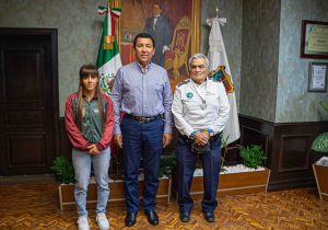 La reunión entre el Presidente Municipal y el Presidente de la citada Federación también tuvo como propósito establecer acuerdos para seguir fortaleciendo el deporte en esta frontera, en donde se tiene un avance importante y ejemplo de ello es la joven Cassandra Michell Vélez Arriaga, quien es campeona mundial en Halterofilia.