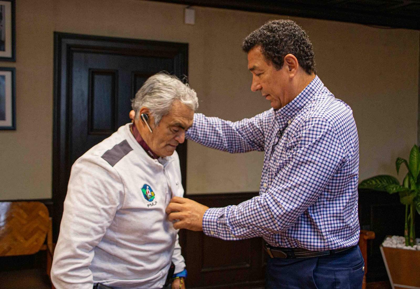 Esta tarde el alcalde Mario Alberto López Hernández recibió al Presidente de la Federación Mexicana de Levantamiento de Pesas, Dr. Rosalío Antonio Alvarado del Angel, quien firmó el libro de visitantes distinguidos y recibió una medalla en reconocimiento a su trayectoria y logros en esta disciplina deportiva.