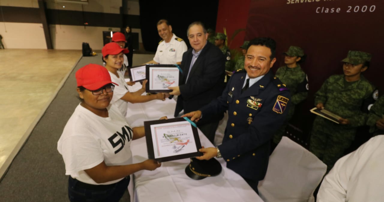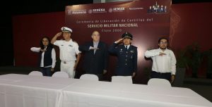 En el evento que se realizó en el Centro de Convenciones “Mundo Nuevo”, estuvieron presentes: el Capitán de Fragata, Carlos Horacio Toscano Sarabia, representante de la Secretaría de Marina Armada de México; el Teniente Coronel de la Fuerza Aérea, Meteorólogo Rafael Mendoza González, representante de la Secretaría de la Defensa Nacional; Iker Olvera Rodríguez, Jefe de la Junta Municipal de Reclutamiento y la Primer Síndico, Gloria Edith Sánchez Delgado.