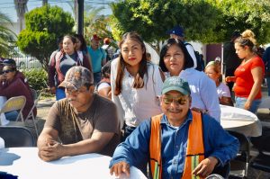 En el festejo estuvieron presentes: el secretario de Servicios Públicos Municipales, Guillermo Villasana Velázquez; la directora de Espacios Públicos, Myria Leal Guajardo y la regidora Perla Guadalupe Medina Ruiz, presidenta de la Comisión de Obras Públicas y Asentamientos Urbanos.