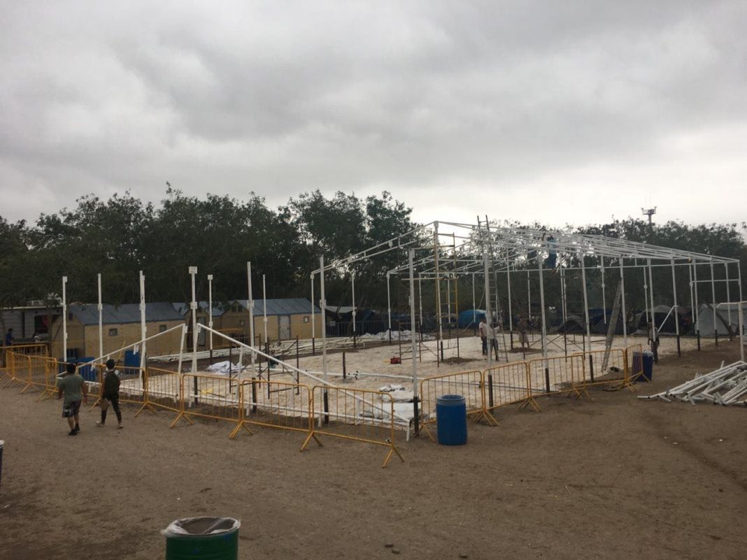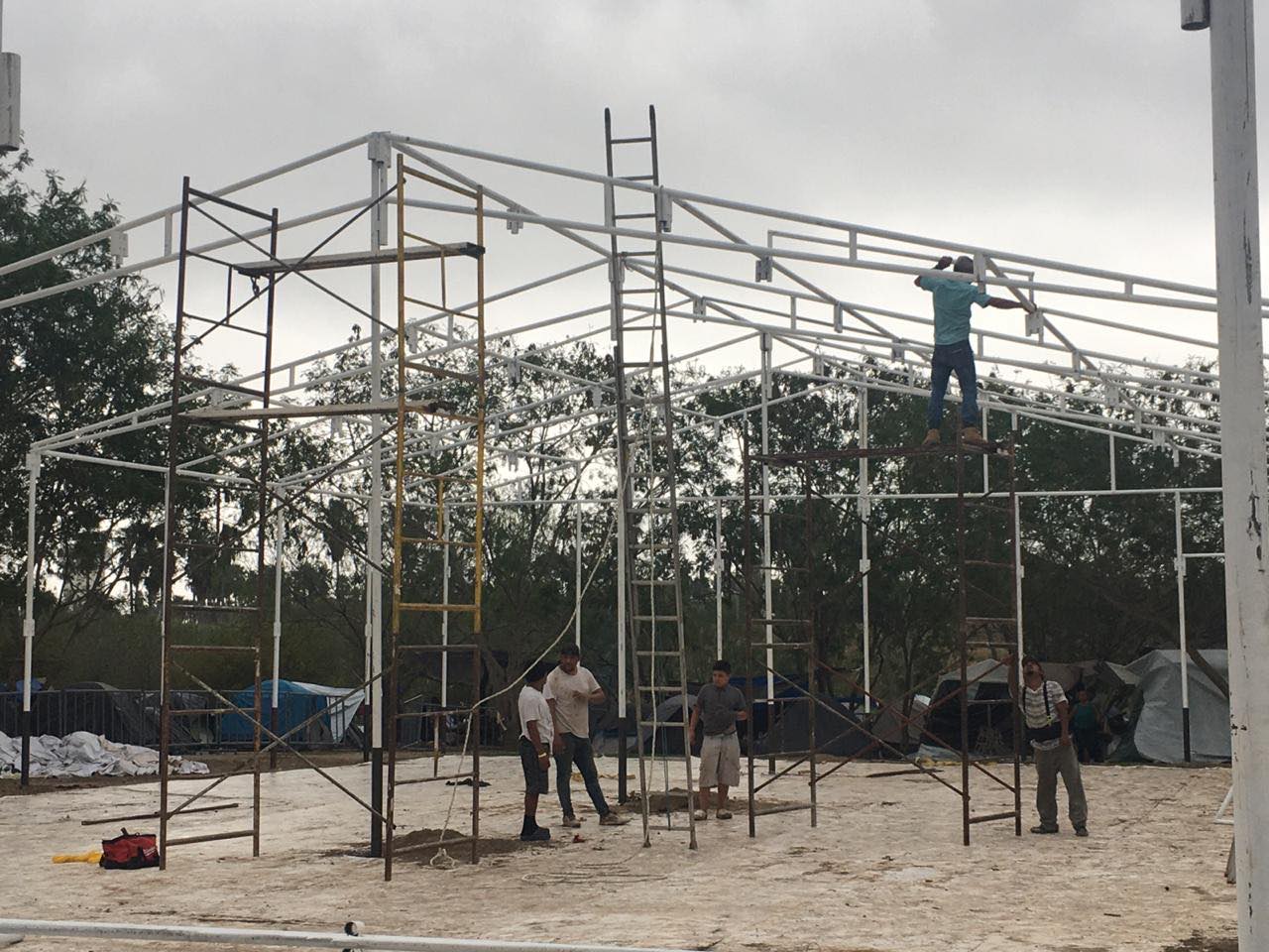 A partir de este martes, comenzaron los trabajos para volver a instalar el comedor de los migrantes en el bordo del Río Bravo, después que en días pasados los fuertes vientos desmantelaran una parte de la lona y tuvieran que quitarla por completo, para evitar cualquier accidente con las personas.