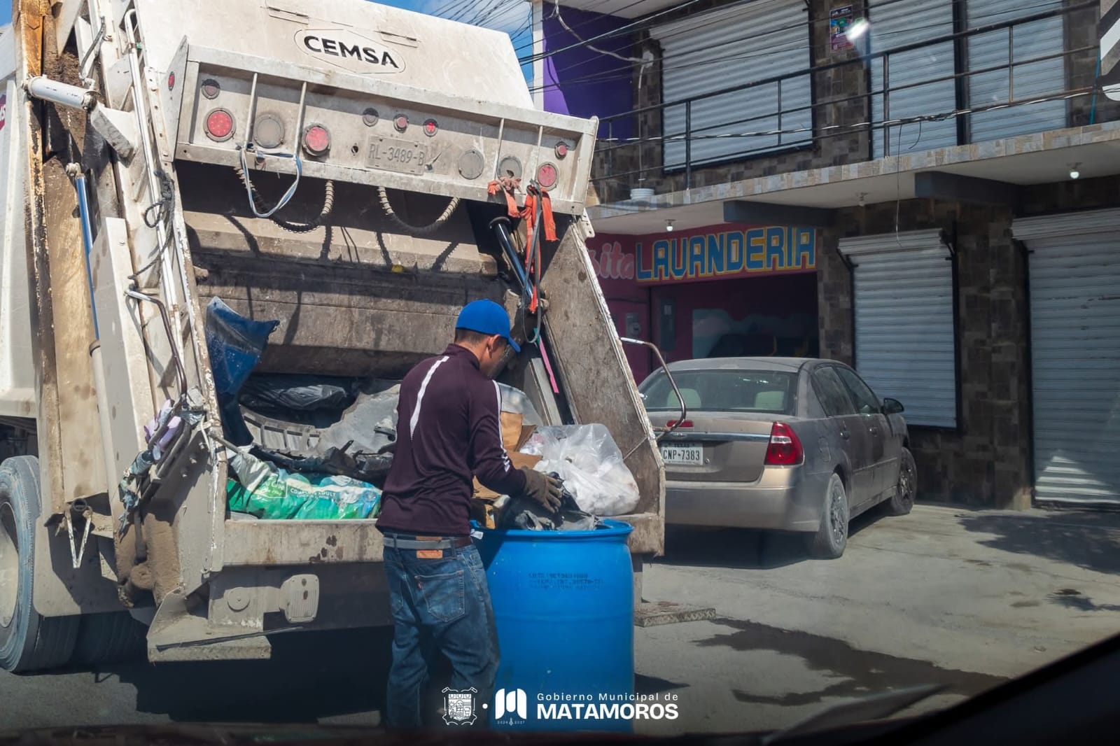 Desde tempranas horas, los equipos de Limpieza Pública recorren distintas colonias, avenidas y espacios de Matamoros, realizando trabajos de recolección de basura, barrido manual y atención a puntos prioritarios.