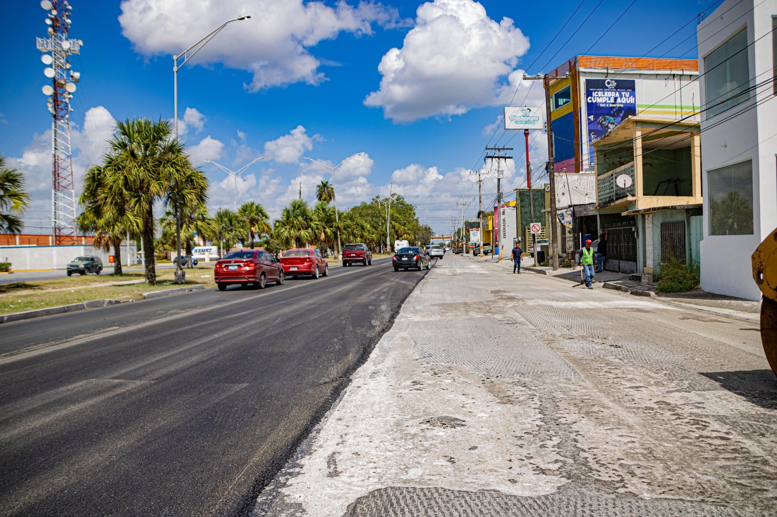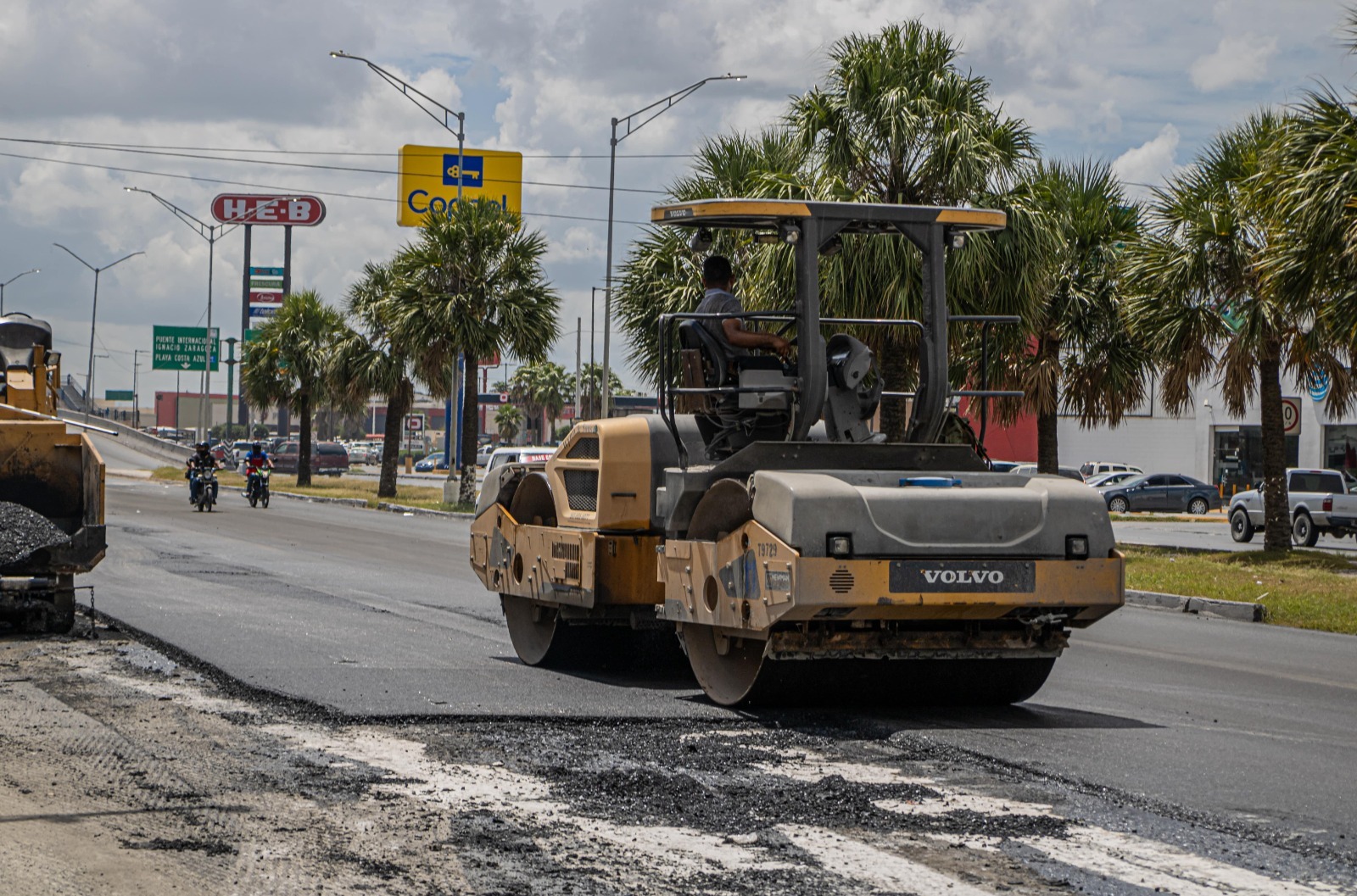 La rehabilitación de este acceso que todos los días registra una gran carga vehicular se realiza por tramos, motivo por el cual, el Gobierno de Matamoros trabaja de la calle sexta al oriente de la ciudad, en tanto que el Gobierno del Estado rehabilita el pavimento de la sexta al poniente.